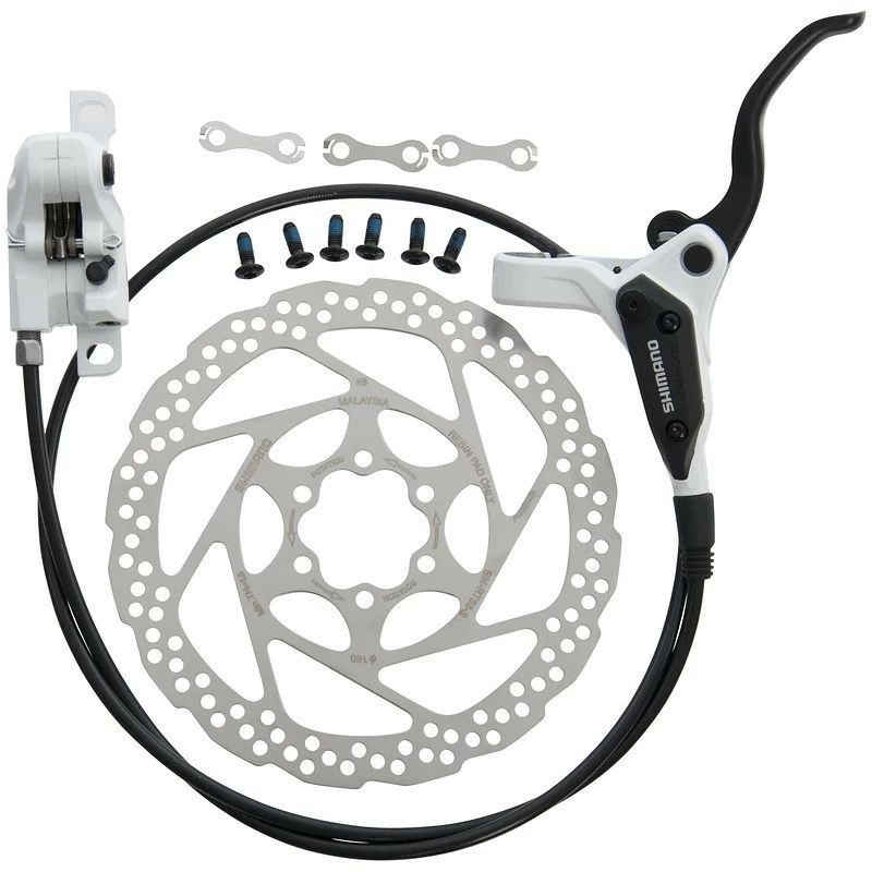 COMPOSITION : KIT Etrier + Levier avant+ durite recoupable, disque 6 trous 160mm avec kit visserie longueur durit = 850 mm disque = 160 mm pour plaquettes résine uniquement Postmount