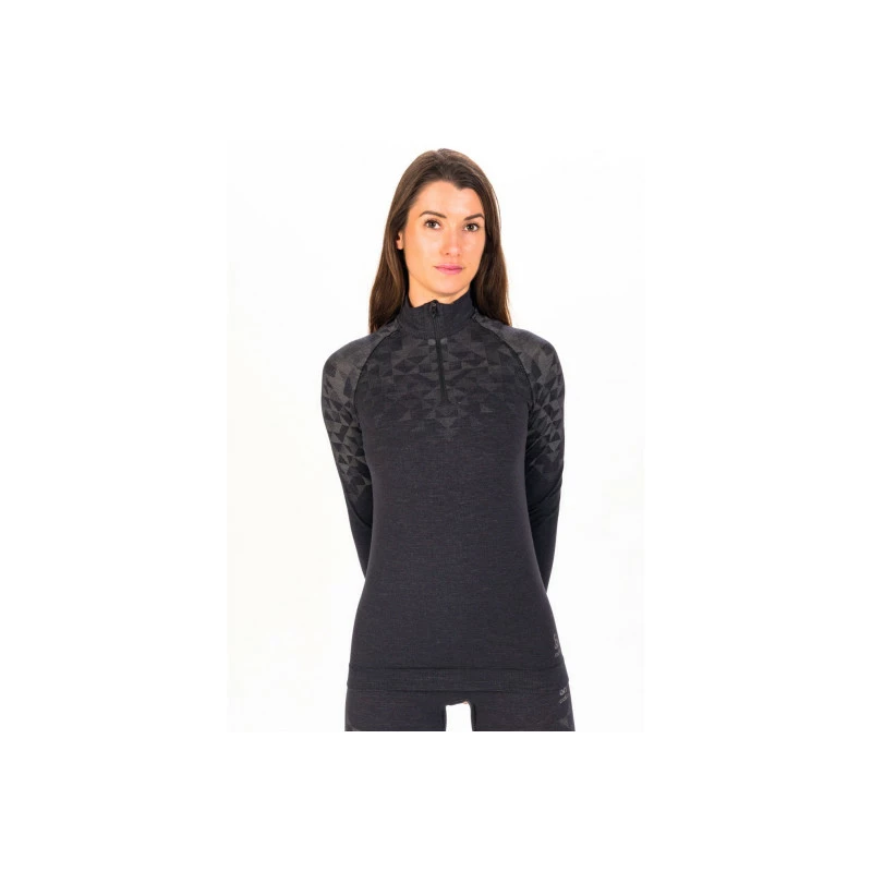 Poursuivez vos sessions sportives en hiver avec le maillot manches longues Odlo Kinship Performance Wool 200 1/2 zip pour femme.