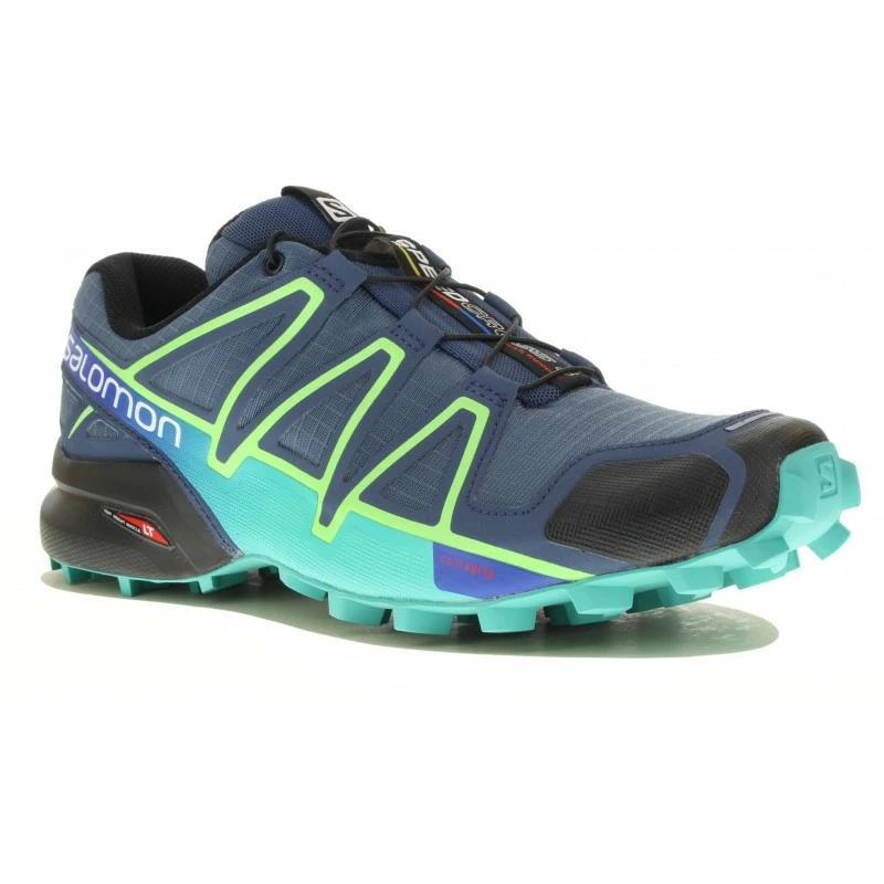 Maintien, accroche, et confort , elle a tout pour vous paire ! La chaussure Salomon SPEEDCROSS 4 bleue acier, bleue et verte d’eau pour femme (Collection Automne/Hiver) est la chaussure incontournable de vos séances de trail.