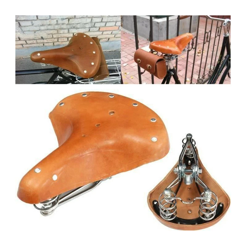 WF25750-Emballage inclus : 1 x Selle vélos (non inclus d’autres choses) Siège de selle de bicyclette Vintage Conçu pour la position de conduite droite Fait de cuir véritable. plus durable Taille: environ 26x10cm Couleur: Brun